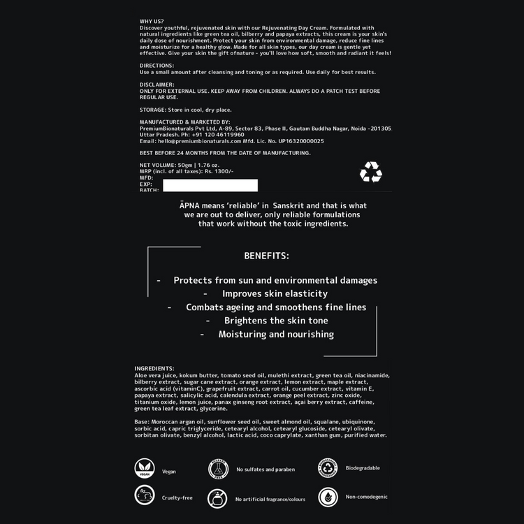 Our Rejuvenating Day Cream with Green Tea, Bilberry & Papaya does wonders for dull skin — deeply hydrating, antioxidant-rich, and perfect for winter skincare. Moisturising on damp skin is your shortcut to glowing, nourished skin all winter long!