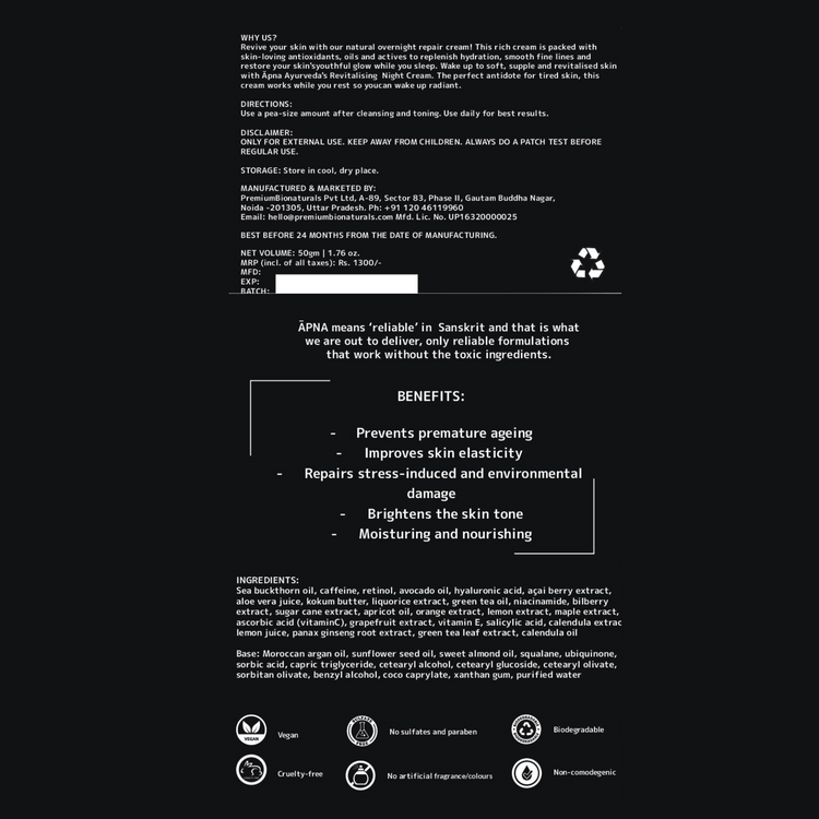 If you're worried about nighttime irritation or want to add more barrier-supportive ingredients, using a retinol-based night cream like the Revitalising Night Cream with Sea Buckthorn, Acai Berry & Retinol can help balance and nourish your skin overnight. Its antioxidant-rich formula complements your morning brightening routine without overloading your skin.