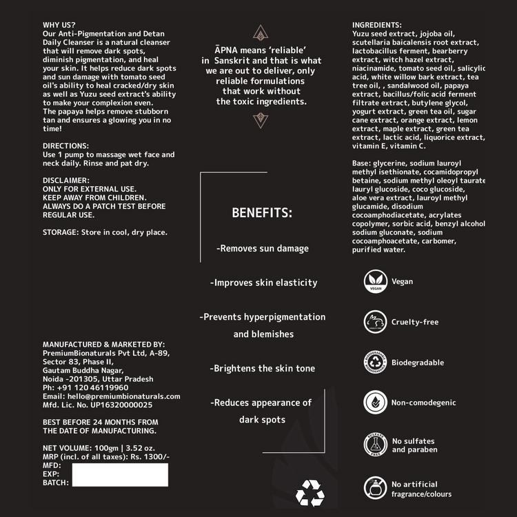 Anti-Pigmentation and Detan Daily Cleanser | Tomato, Papaya & Yuzu