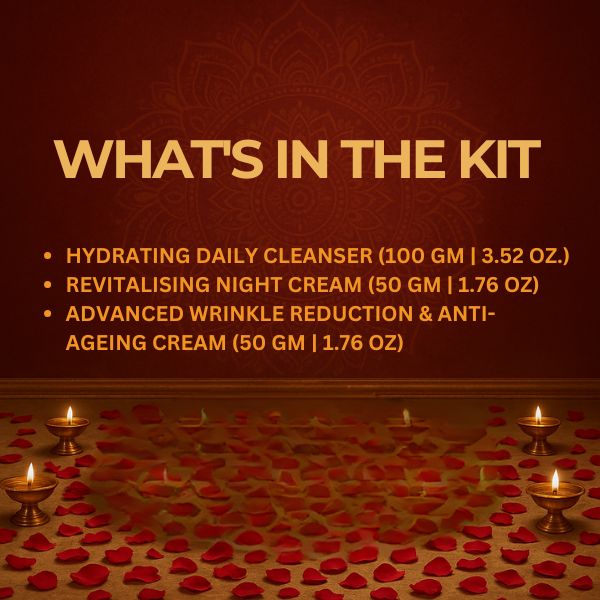 A 3-in-1 premium anti-ageing kit crafted to fight fine lines, boost collagen, and restore firmness. With Retinol, Collagen, and antioxidant-rich botanicals, this festive kit rejuvenates skin, improves elasticity, and leaves you glowing with youthful radiance.